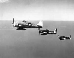 Zwei Bearcats begleiten eine ferngesteuerte Hellcat-Zieldrohne; beachte das leere Cockpit... |