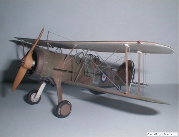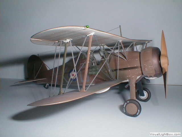 Das Modell zeigt eine Gladiator des südafrikanischen Fliegerasses M. "Pat" Pattle, dem mit mindestens 40 Abschüssen (davon 15 mit Gladiator) erfolgreichste Pilot des Commonwealth.