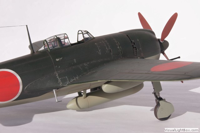 Die Shiden wurde vor allem über Formosa, den Philippinen und später bei Okinawa - trotz technischer Schwierigkeiten mit einigem Erfolg - von der japanischen Marine verwendet. Die hier dargestellte Maschine gehörte zur Yokosuka Marine Jagdgruppe.