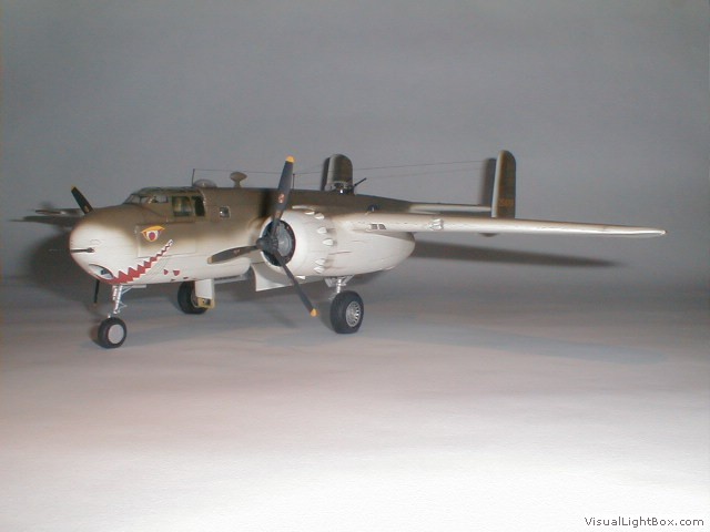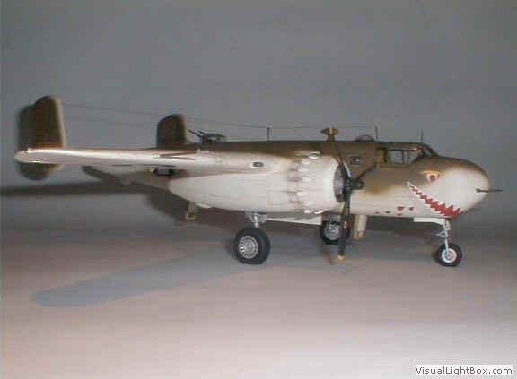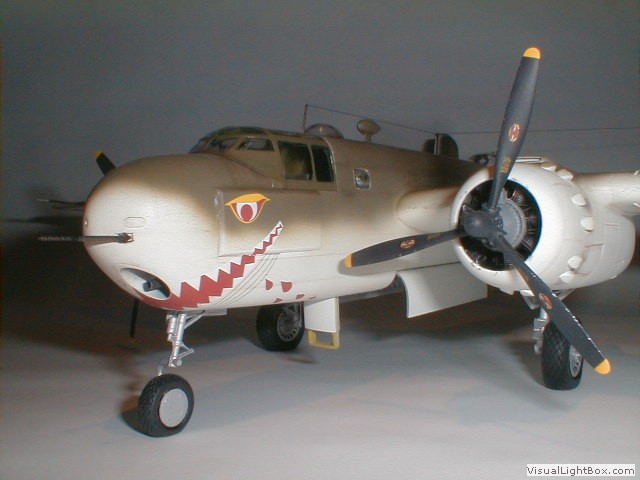 Die hier dargestellte Maschine ist eine Spezialversion ("Gunship") mit 75-mm-Kanone vorne links im Rumpf. Von dieser Version wurden über 400 Stück gebaut und vor allem zur Schiffsbekämpfung im pazifischen Raum verwendet. Dieses Exemplar hier soll allerdings in der Karibik zum Einsatz gekommen sein - auf was immer man dort zu schiessen gedachte...?