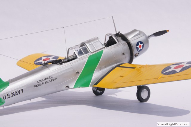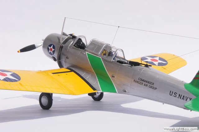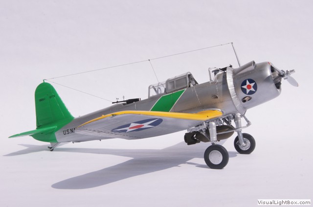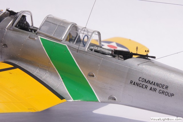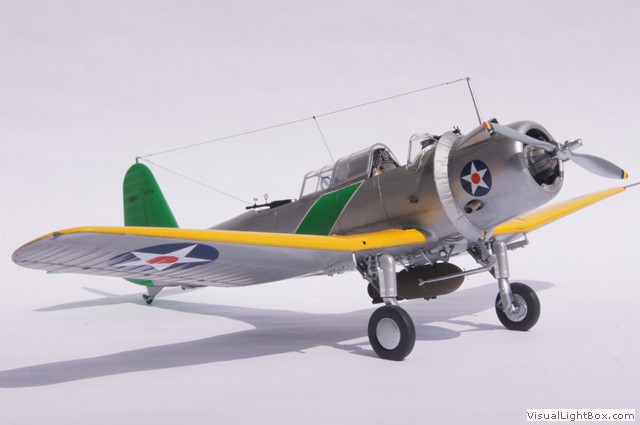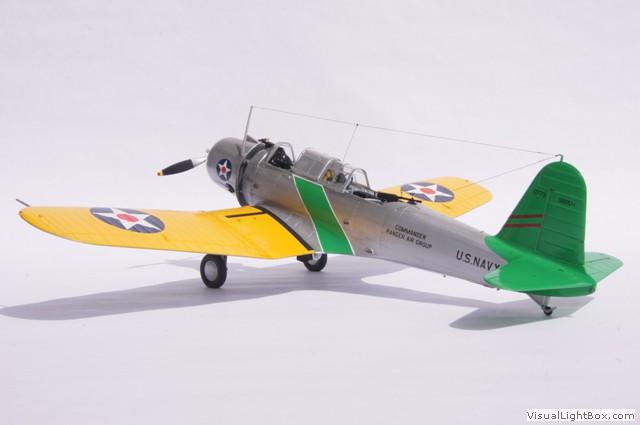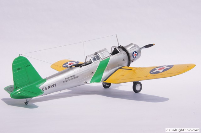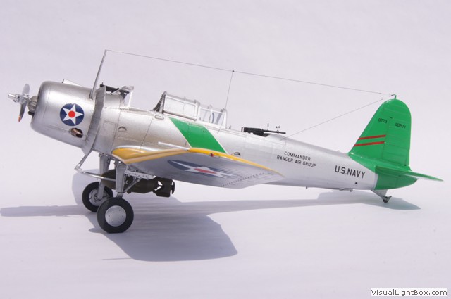 Die hier dargestellte Maschine wurde im Mai 1941 als Folge der Kriegshandlungen in Europa vom Flugzeugträger USS Ranger aus für sogenannte "Neutrality Patrols" im Atlantik eingesetzt - die USA waren zu dem Zeitpunkt ja noch neutral. Das unüblicherweise auf der Motorhaube angebrachte Hoheitszeichen war für diese Art von Einsätzen vorgeschrieben.